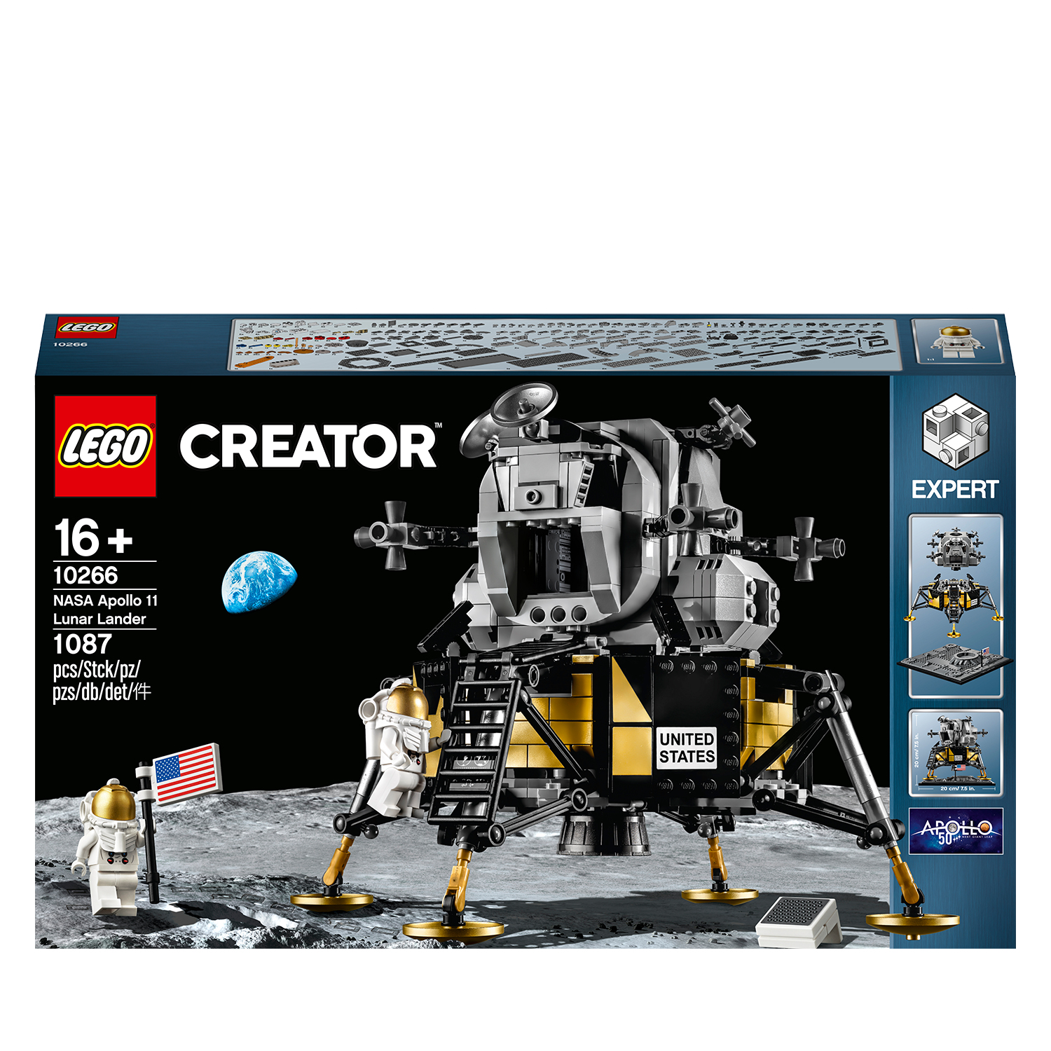 Festeggia il primo allunaggio con questo modello del Lander lunare Apollo 11 della NASA 10266 LEGO Creator Expert, sviluppato in collaborazione con la NASA per celebrare il 50° anniversario di un evento storico che ha affascinato il mondo intero. Questo modello da collezione è una replica altamente dettagliata del modulo lunare Eagle dell’Apollo 11, contenente anche una raffigurazione della superficie lunare, completa di cratere, impronte e una bandiera americana. Lo stadio di discesa è dotato di “suole” di atterraggio e di pannelli color oro, telecamera apribile, boccaporti laser e una scala, mentre lo stadio di ascesa ha un interno dettagliato con spazio per 2 astronauti. Dotato della targhetta del Lander lunare Apollo 11, questo modello da esposizione è un fantastico centrotavola per la casa o l’ufficio e offre un’esperienza costruttiva stimolante e gratificante, un po’ nostalgica. Include 2 minifigure di astronauta con decorazione NASA e caschi color oro.